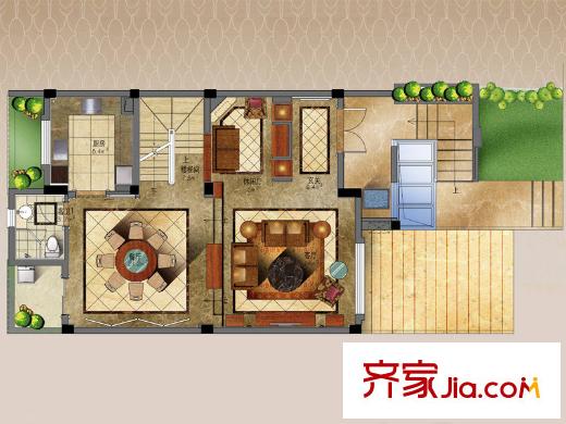 御湖国际湖居别墅A户型一层平面图 5室3厅5卫1厨