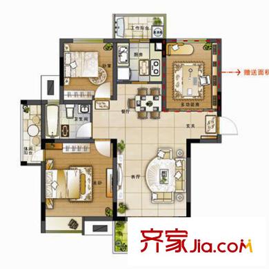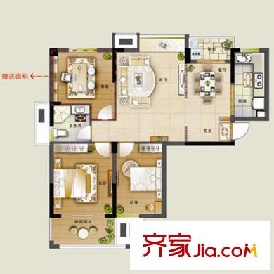 金色学府一期小高层1#、3#B3户型图 2室2厅1卫1厨