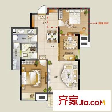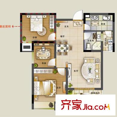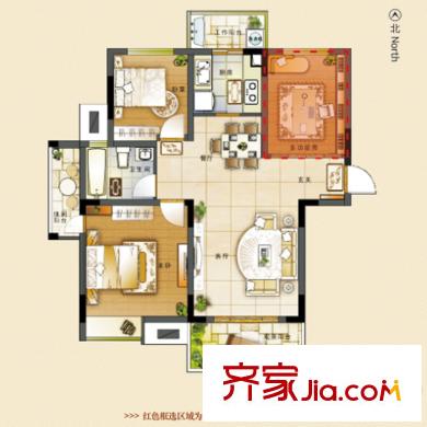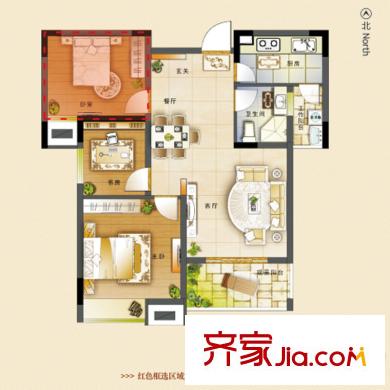 金色学府二期4号楼端户B3户型 2室2厅1卫1厨