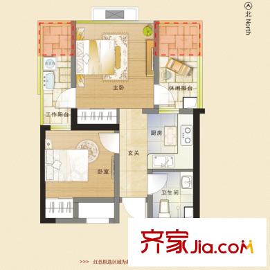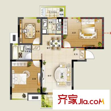 金色学府一期高层2#B7户型图 2室2厅1卫1厨