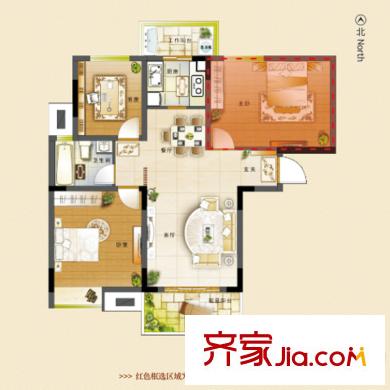 金色学府二期4号楼中间户B2户型 2室2厅1卫1厨
