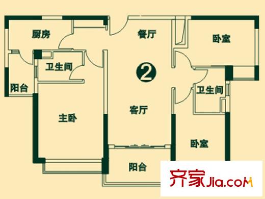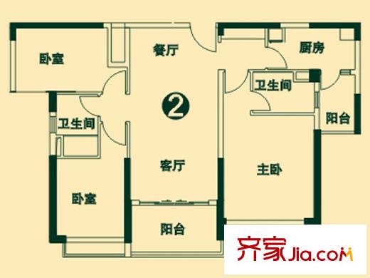 南昌恒大绿洲二期5号楼2单元2号户型 3室2厅2卫1厨