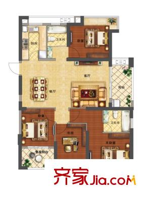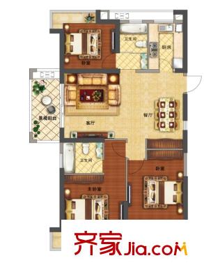 正荣御平方米3#高层4室2厅F1户型 4室2厅2卫