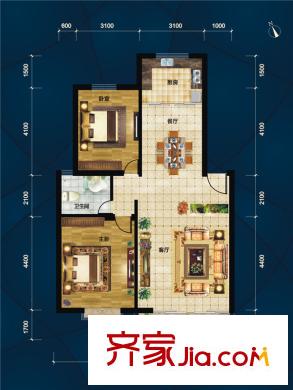 豫章新城花园洋房C户型 2室2厅1卫1厨