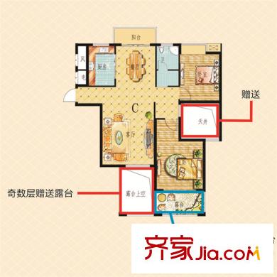 南莲华庭1#楼高层C户型 2室2厅1卫1厨