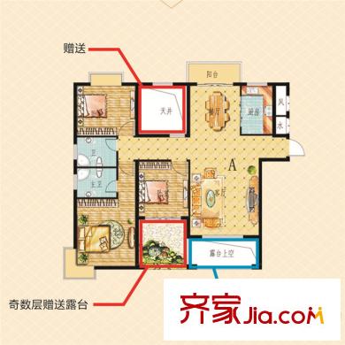 南莲华庭1#楼高层A户型 3室2厅2卫1厨