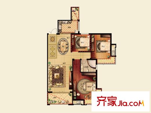 城泰威尼斯江域一期1#标准层G3户型 3室2厅2卫1厨