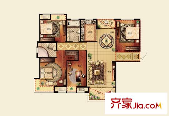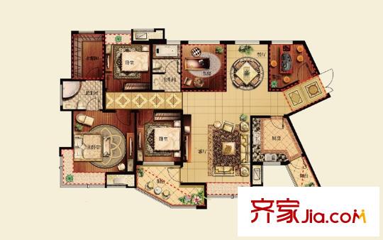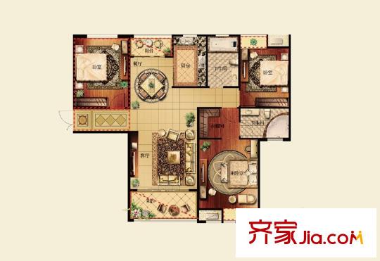 城泰威尼斯江域一期别墅C-1户型 4室2厅2卫1厨