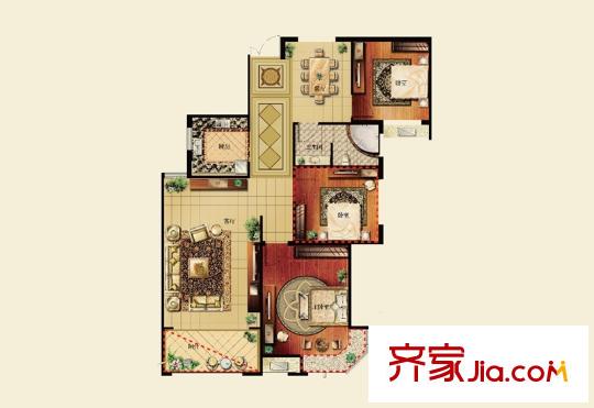 城泰威尼斯江域一期别墅C-3户型 3室2厅2卫1厨