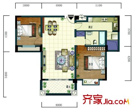 东区小时代二期小高层B户型 3室2厅2卫1厨