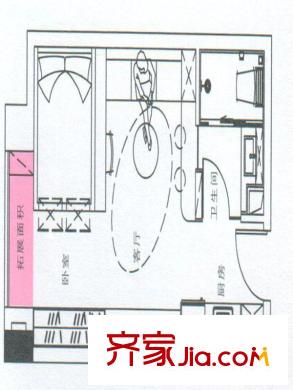 东区小时代三期高层A户型 1室1厅1卫1厨