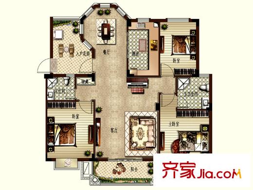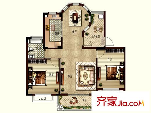 东区小时代二期小高层A户型 3室2厅2卫1厨