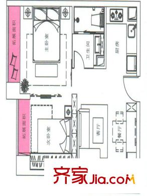 东区小时代二期小高层C户型 2室2厅1卫1厨