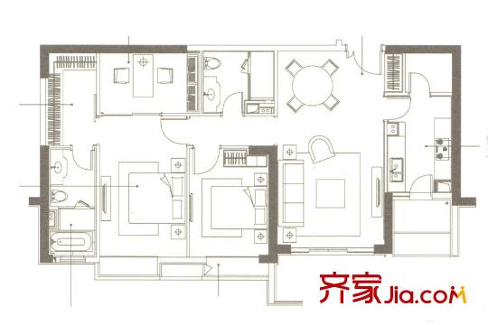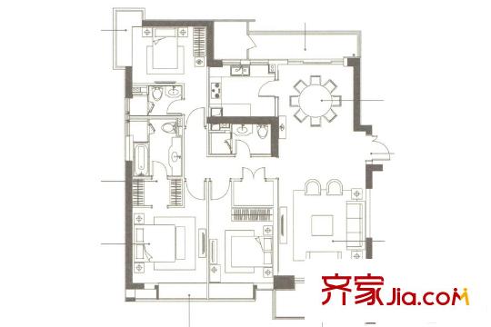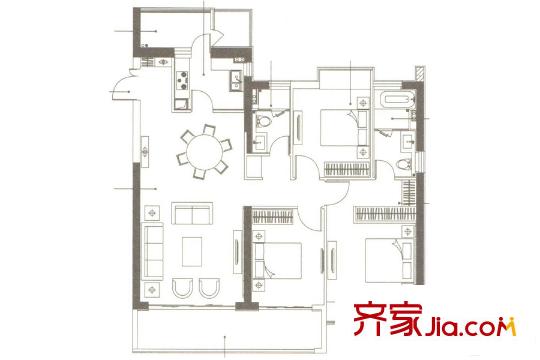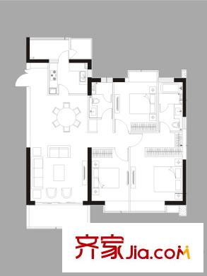 南昌雅颂居首期2#楼04室户型 3室2厅2卫1厨