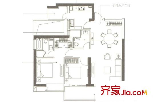 南昌雅颂居首期2#楼03室户型 2室2厅2卫1厨