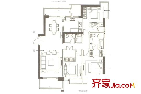 南昌雅颂居三号楼03室 3室2厅3卫1厨