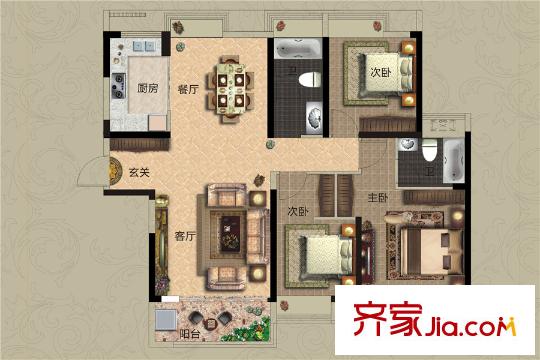 南昌华南城隆祥苑20#楼D2户型 3室2厅2卫1厨