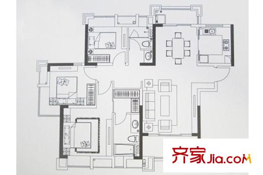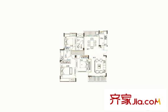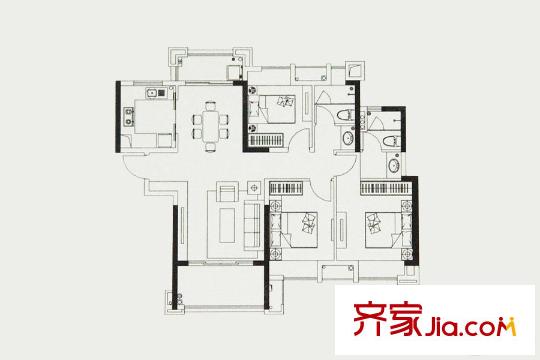 汉港凯旋城高层120平方米三房户型 3室2厅1卫1厨