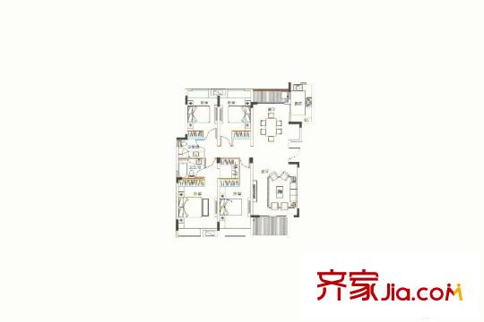 汉港凯旋城洋房146平方米四房户型 4室2厅2卫1厨