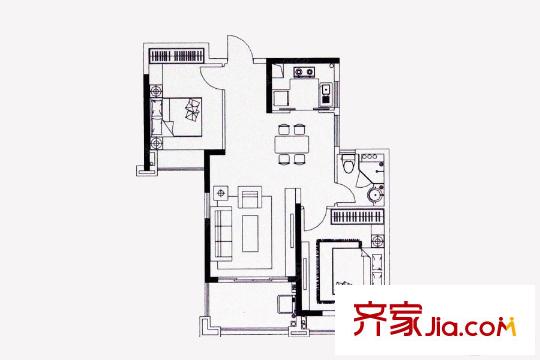 汉港凯旋城高层88平方米两房户型 2室2厅1卫1厨
