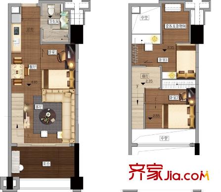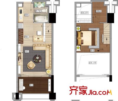 洪客隆英伦联邦14#楼LOFT一房A户型 1室2厅1卫1厨