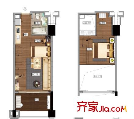 洪客隆英伦联邦50.00㎡LOFT一房A户型1室2厅1卫1厨 50平户型