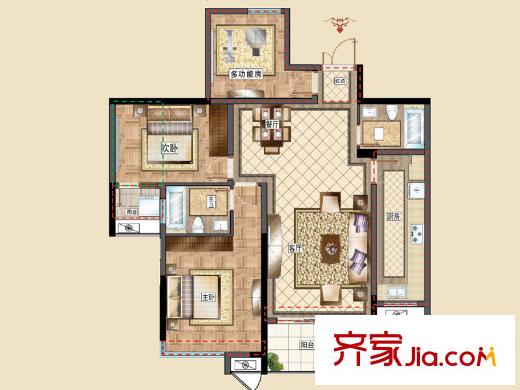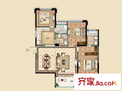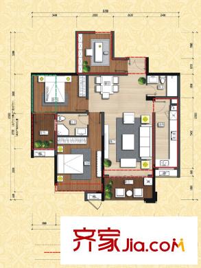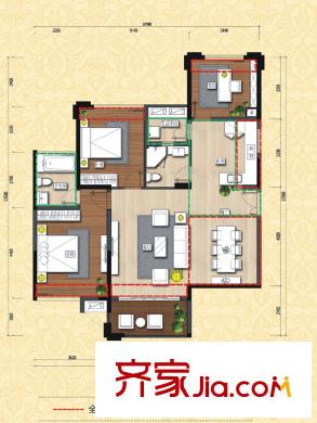 洪客隆英伦联邦5#-9#楼三房A户型 3室2厅2卫1厨