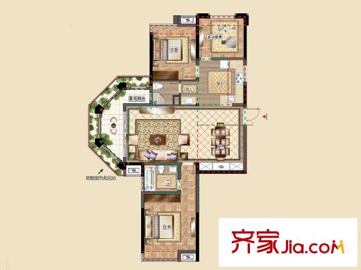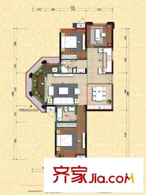 洪客隆英伦联邦4#、12#高层楼A户型 3室2厅2卫1厨