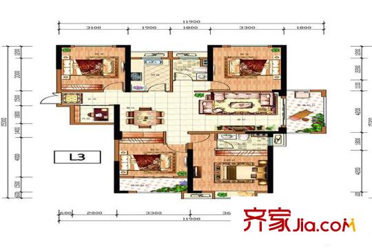 南天金源11#楼L3户型 3室2厅2卫1厨