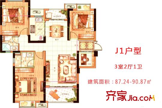 南天金源12#、16#楼J1户型 3室2厅1卫