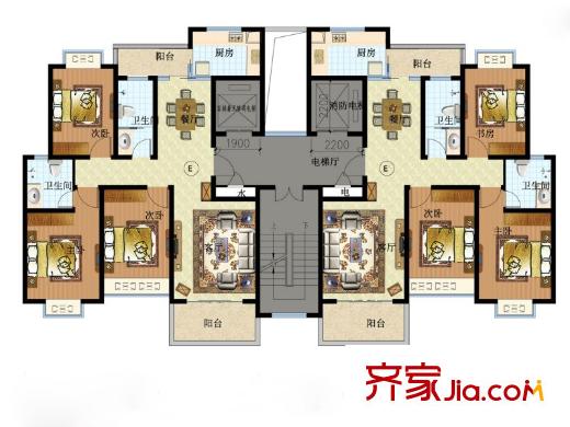 春和景明花园E户型 3室2厅2卫1厨