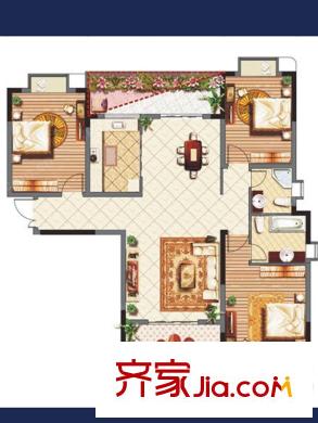 伟梦清水湾东方院A1户型 3室2厅2卫1厨