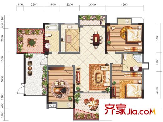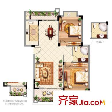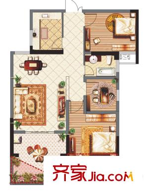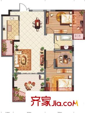 伟梦清水湾东方院B1户型 3室2厅2卫1厨