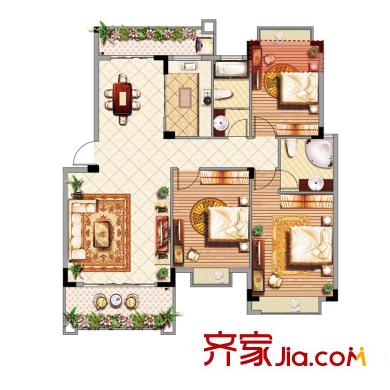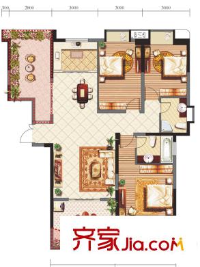 伟梦清水湾东方院C1户型 3室2厅2卫1厨