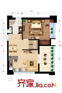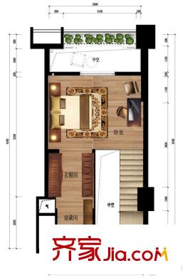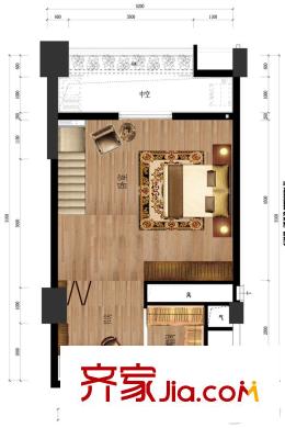 庞大领航LOFT公寓B户型2F 1室1厅1卫1厨