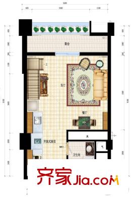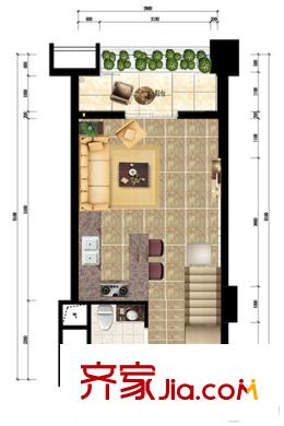 庞大领航LOFT公寓B户型1F 1室1厅1卫1厨