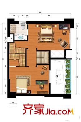 庞大领航LOFT公寓C户型2F 2室2厅1卫1厨