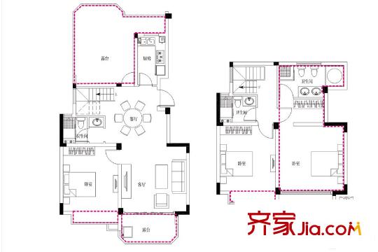 煌盛中央公园洋房B户型 5室4厅4卫1厨