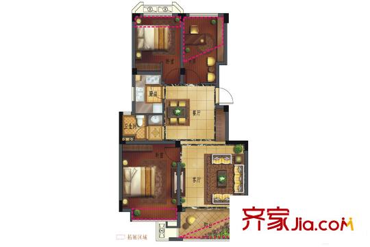 煌盛中央公园洋房A户型 3室2厅1卫1厨