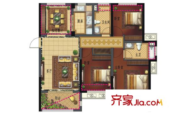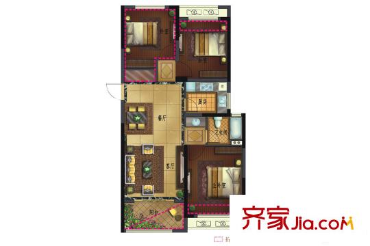 煌盛中央公园洋房C户型 3室2厅3卫1厨