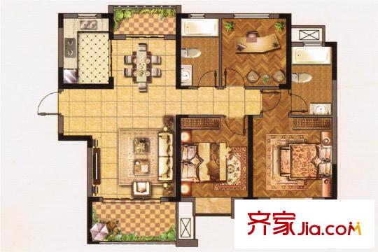 保利心语花园高层C3户型 3室2厅2卫1厨