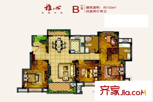 保利心语花园洋房B户型 4室2厅2卫1厨