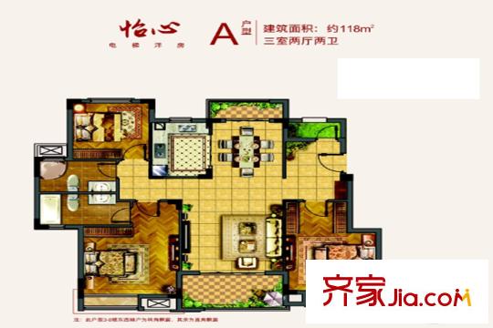 保利心语花园洋房A户型 3室2厅2卫1厨