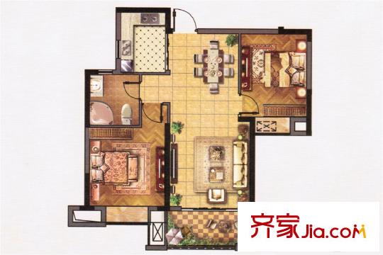保利心语花园高层C2户型 3室2厅1卫1厨