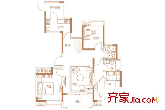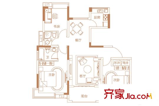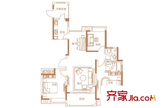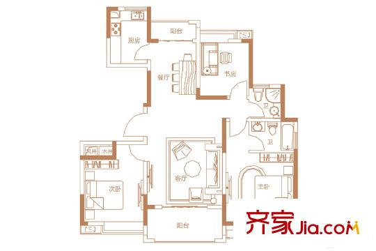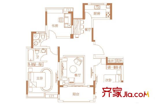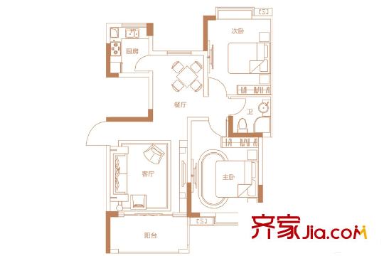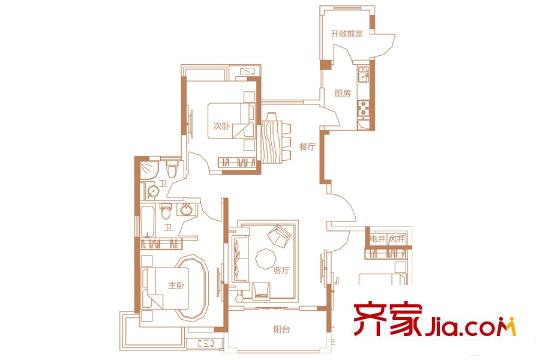 联泰梧桐壹号6-7#楼B2户型 3室2厅2卫1厨