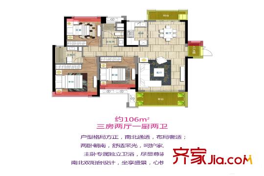 新力愉景湾B1户型 3室2厅2卫1厨