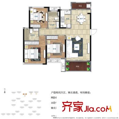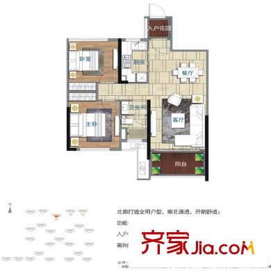 新力愉景湾一期3#、5#高层电梯房B4户型 3室2厅1卫1厨