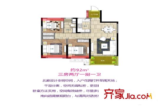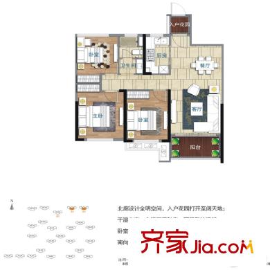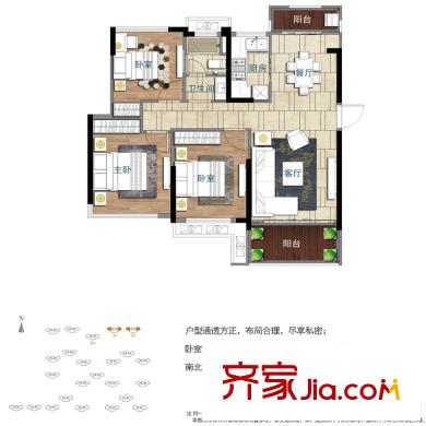 新力愉景湾一期6#高层电梯房B1户型 3室2厅1卫2厨