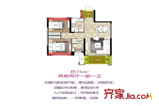 新力愉景湾一期6#高层电梯房B2户型 2室2厅1卫1厨