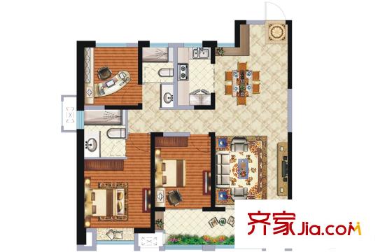 南昌新城吾悦广场B1户型 3室2厅2卫1厨